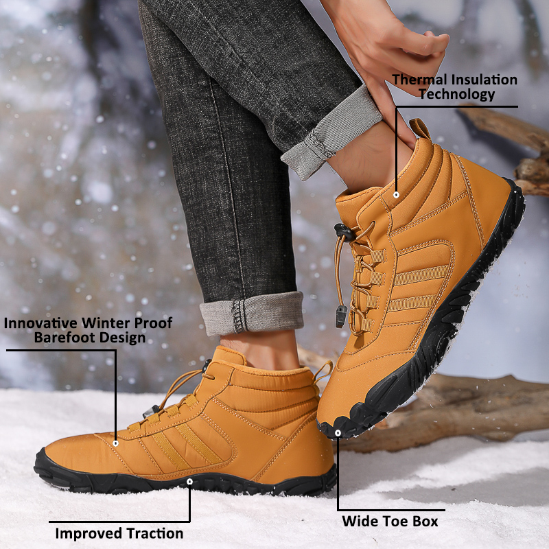 Men's Barefoot Shoes Winter Waterproof Trail Running Shoes Warm Lined Winter Shoes Unisex Outdoor Snow Boots Non-Slip Winter Boots