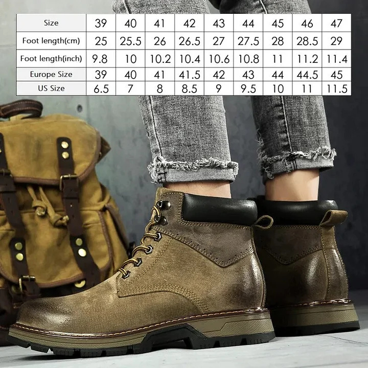 Men's Classic Vintage Ankle Boots Genuine Leather Boots Work Boots Snow Boots
