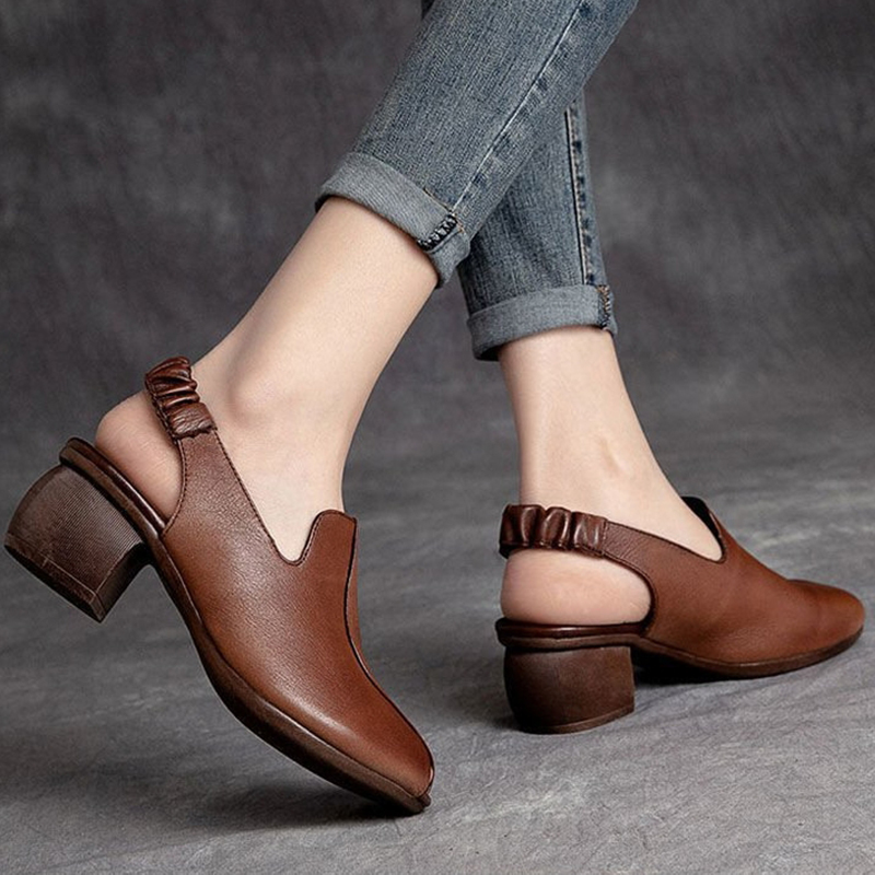 🔥Last Day Promotion 50% OFF - Women's Retro Chunky Heel Open Toe Leather Sandals