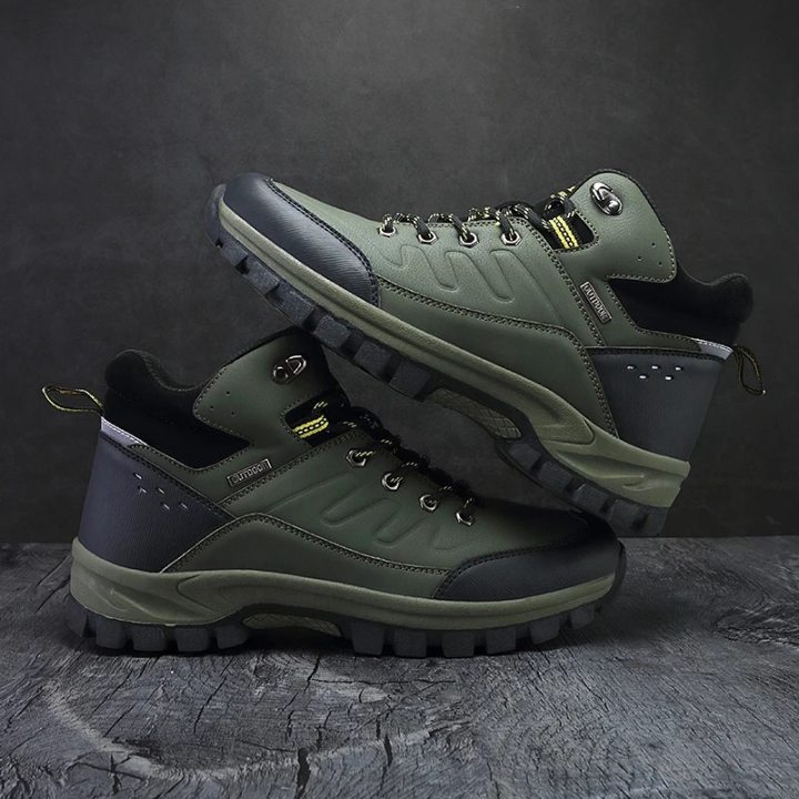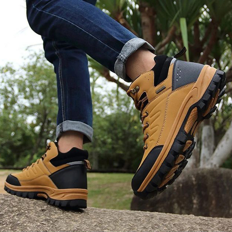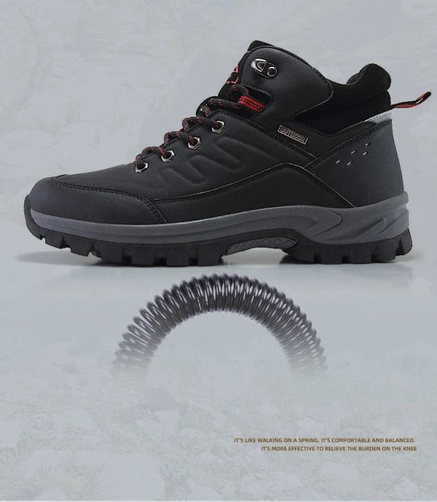 The upper of hiking shoes is made of waterproof leather ,which is very scratch and abrasion resistant. The ergonomic design allows you to easily put your feet in these shoes. Excellent workmanship, the hiking shoes are very durable and high quality.