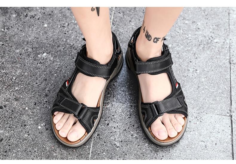 Men's Sandals Genuine Leather Men's Slippers Gladiator Men's Beach Sandals Soft, comfortable outdoor wading shoes