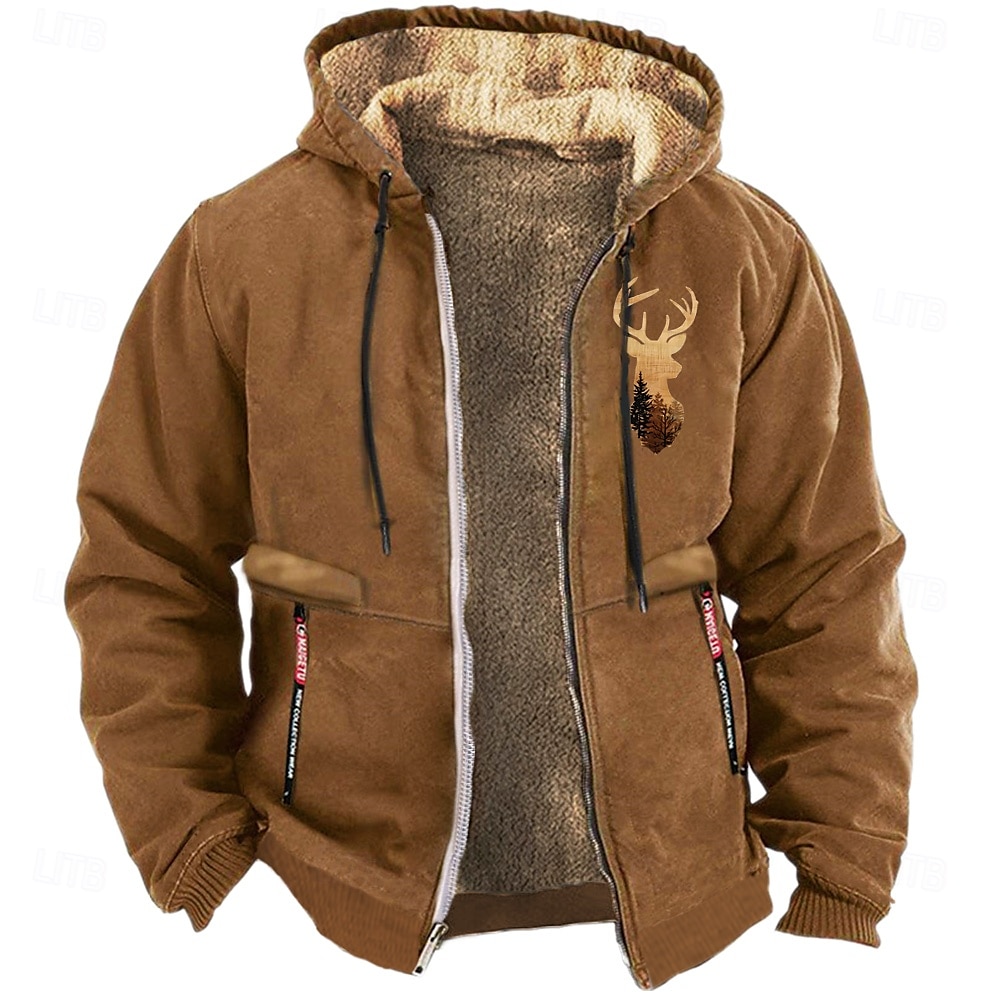 Gender:Men's,Style:Vintage,Western Style,Occasion:Streetwear,Vacation,Tops Type:Sweatshirt,Neckline:Hooded,Fabric:Polyester,Design:Print,Sleeve Length:Long Sleeve,Elasticity:Stretchy,Look After Me:Wet and Dry Cleaning,Washable,Pattern:Deer,Cowboy,Season:Fall & Winter,Details:Fleece lined,Hoodie,Print Type:Graphic Print,