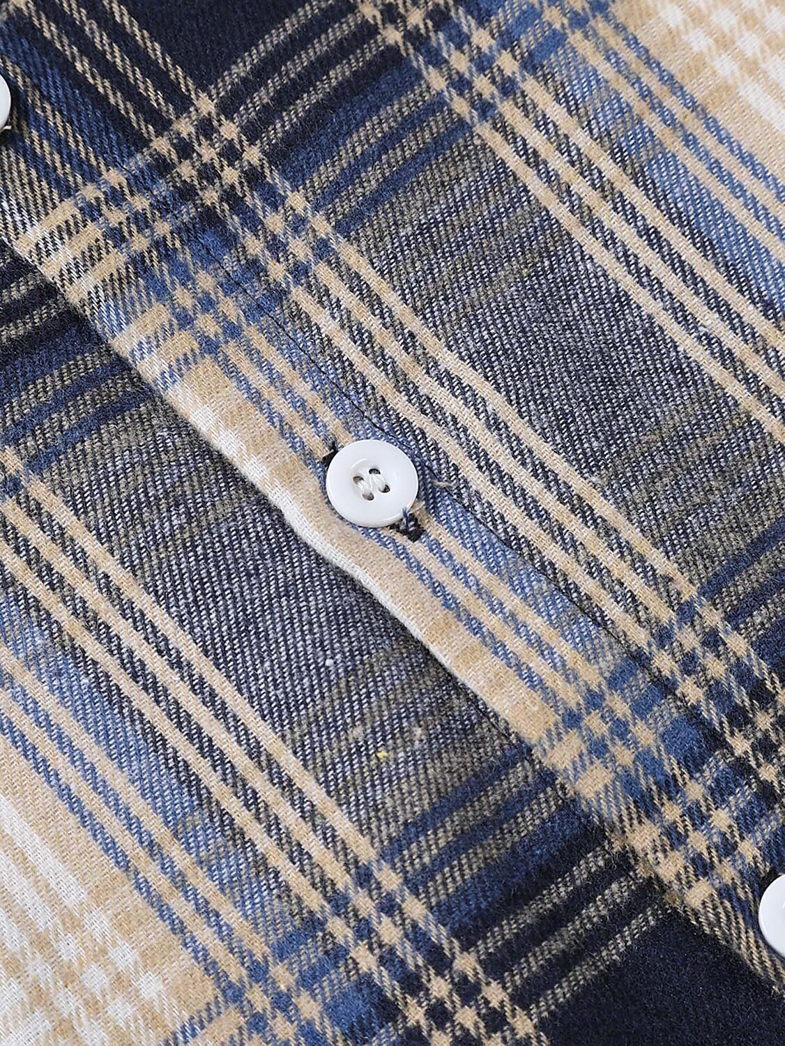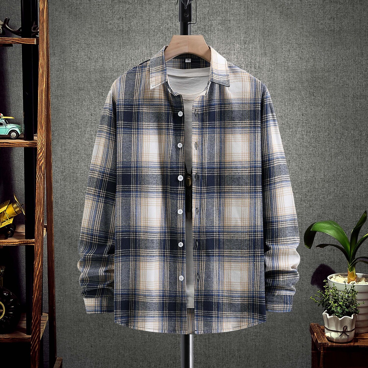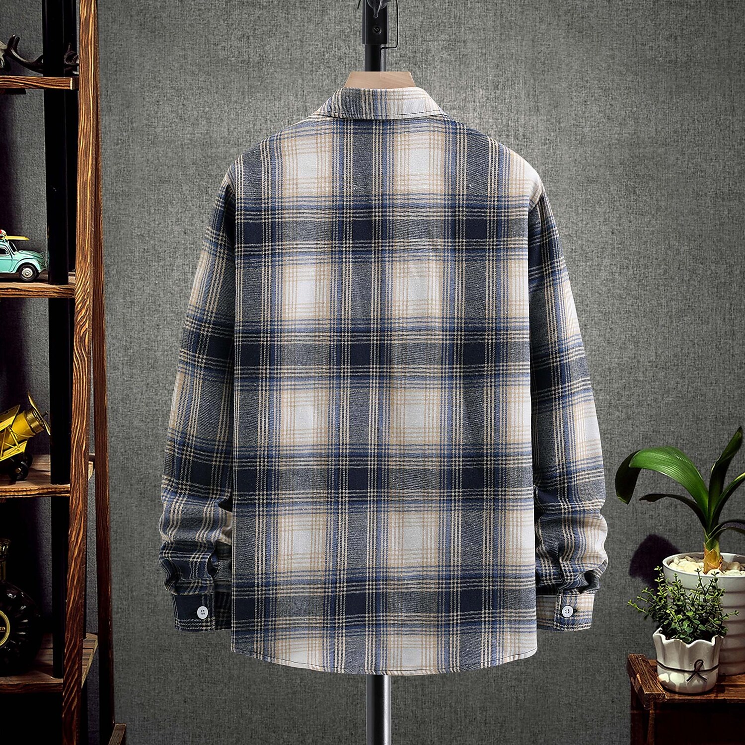 Men's Brushed Flannel Check Long Sleeve Shirt Simple Basic Casual Classic Gray