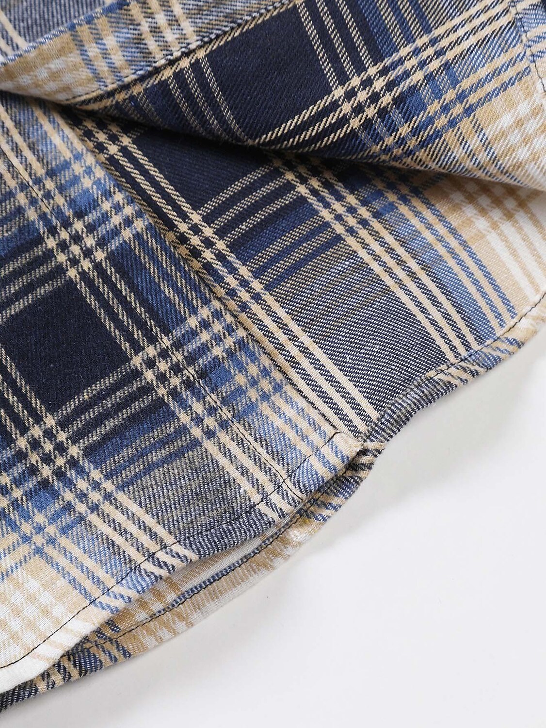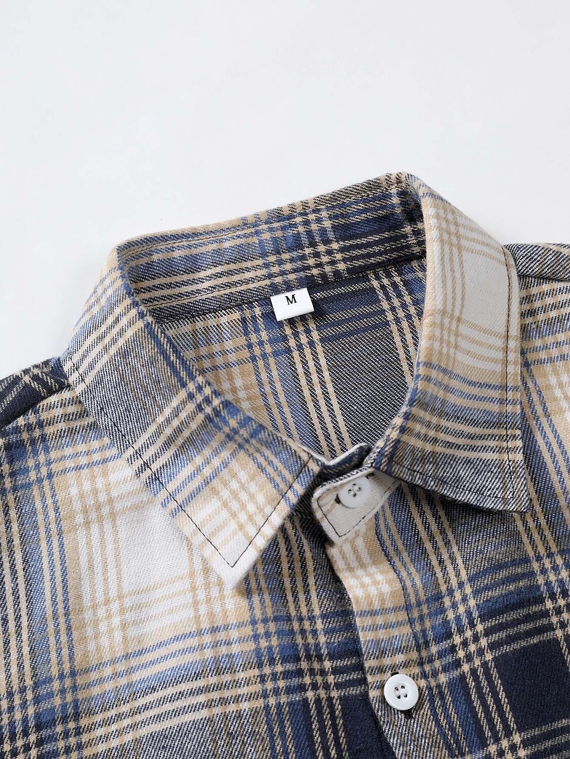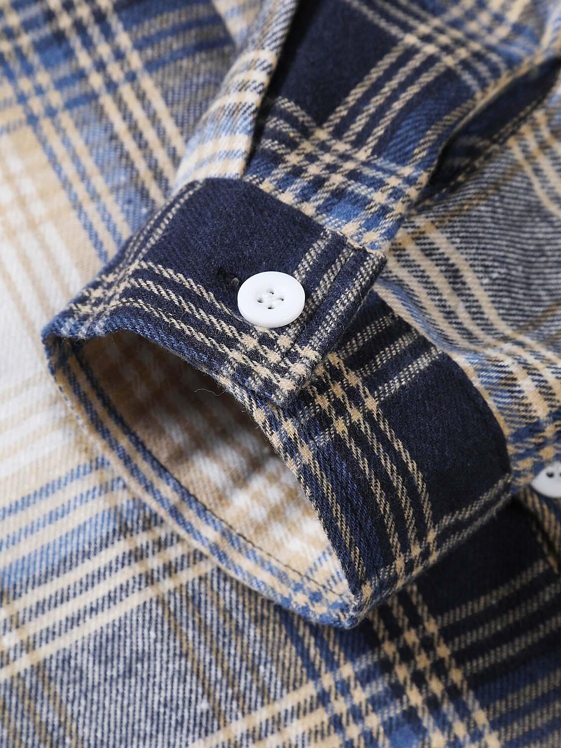 Men's Brushed Flannel Check Long Sleeve Shirt Simple Basic Casual Classic Gray