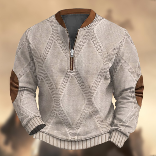 Men's Vintage Western Knitting Print Zipper Stand Collar Casual Sweatshirt