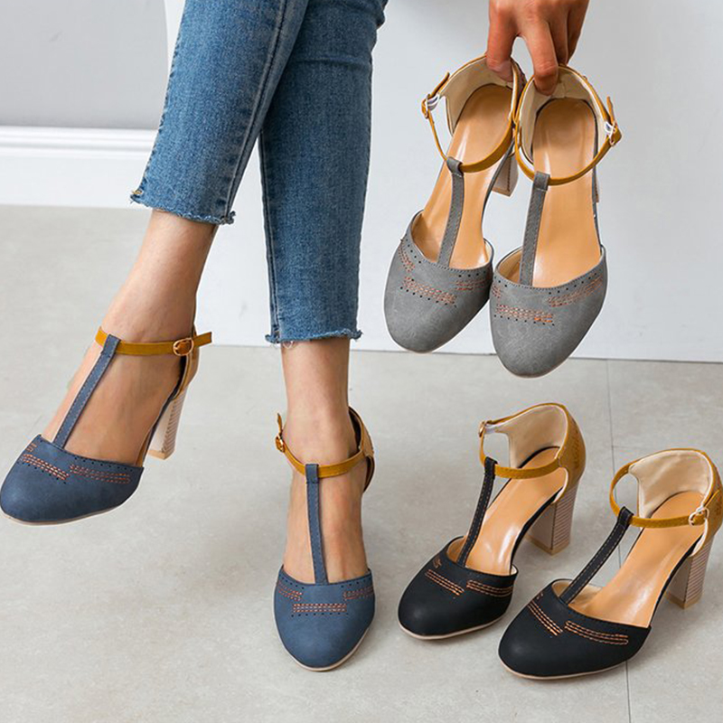 🔥Last Day Promotion 50% OFF - Women's Retro Round Toe Chunky Heel Sandals