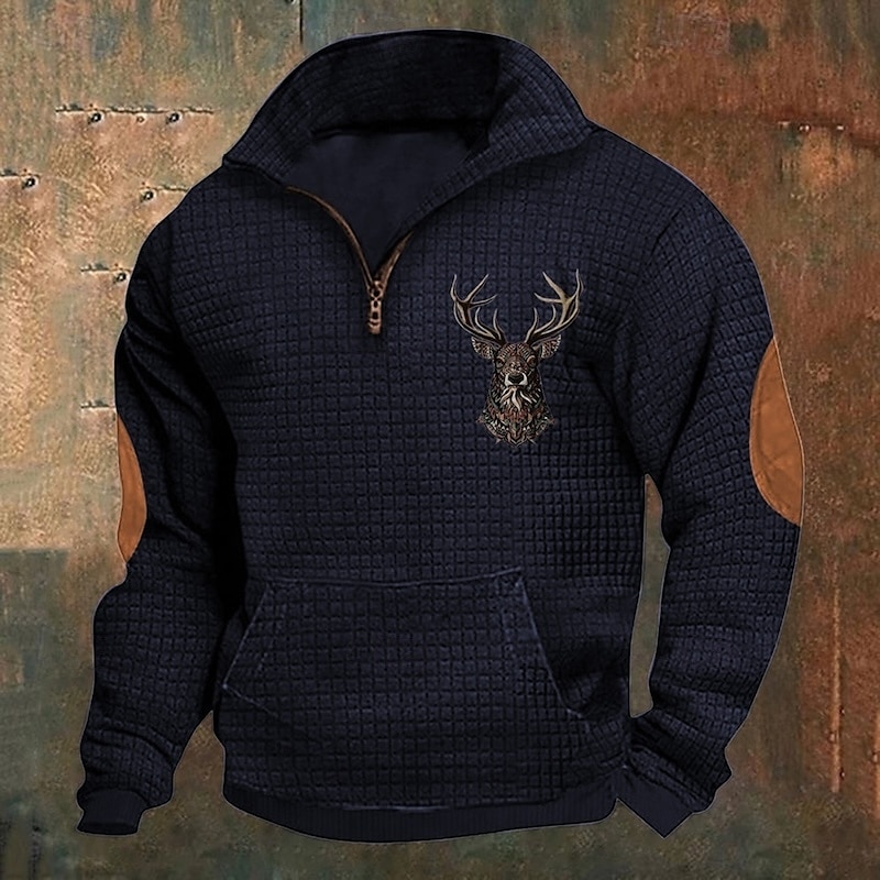 Gender:Men's,Style:Casual,Streetwear,Occasion:Sportswear,Christmas,Holiday,Daily,Sports Clothing Sub Category:Waffle Sweatshirt,Quarter Zip Sweatshirt,Sweatshirt,Tops Type:Basic Sweatshirts,Neckline:Half Zip,Fabric:Polyester,Waffle Fabric,Design:Print,Sleeve Length:Long Sleeve,Elasticity:Micro-elastic,Look After Me:Wet and Dry Cleaning,Washable,Pattern:Reindeer,Season:Spring & Fall,