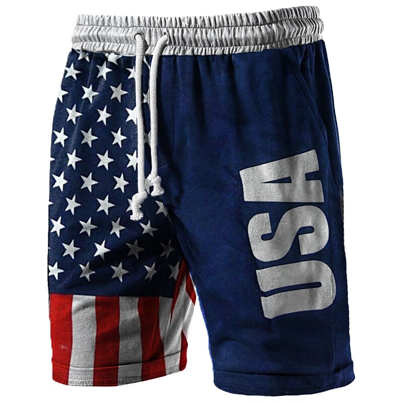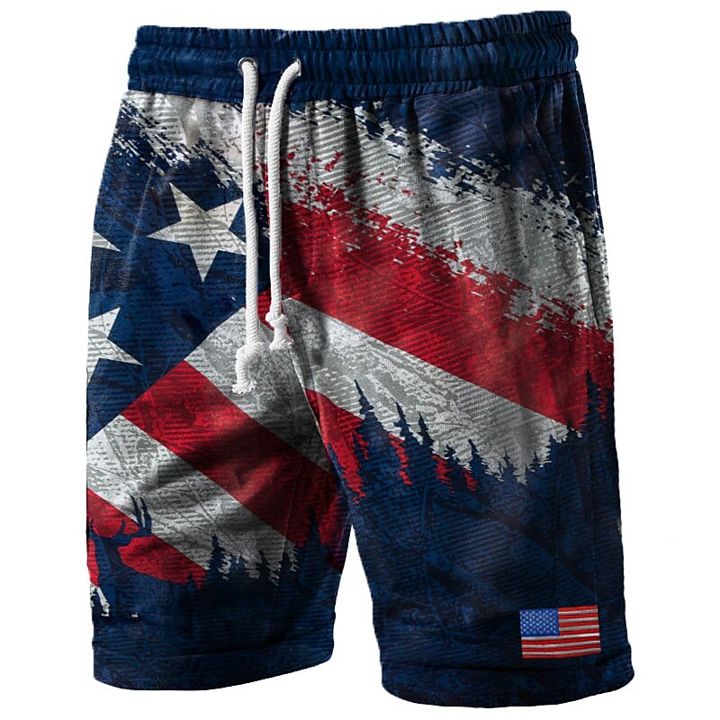 Men's Graphic Patterned American Flag Drawstring Pocket Elastic Waist Shorts