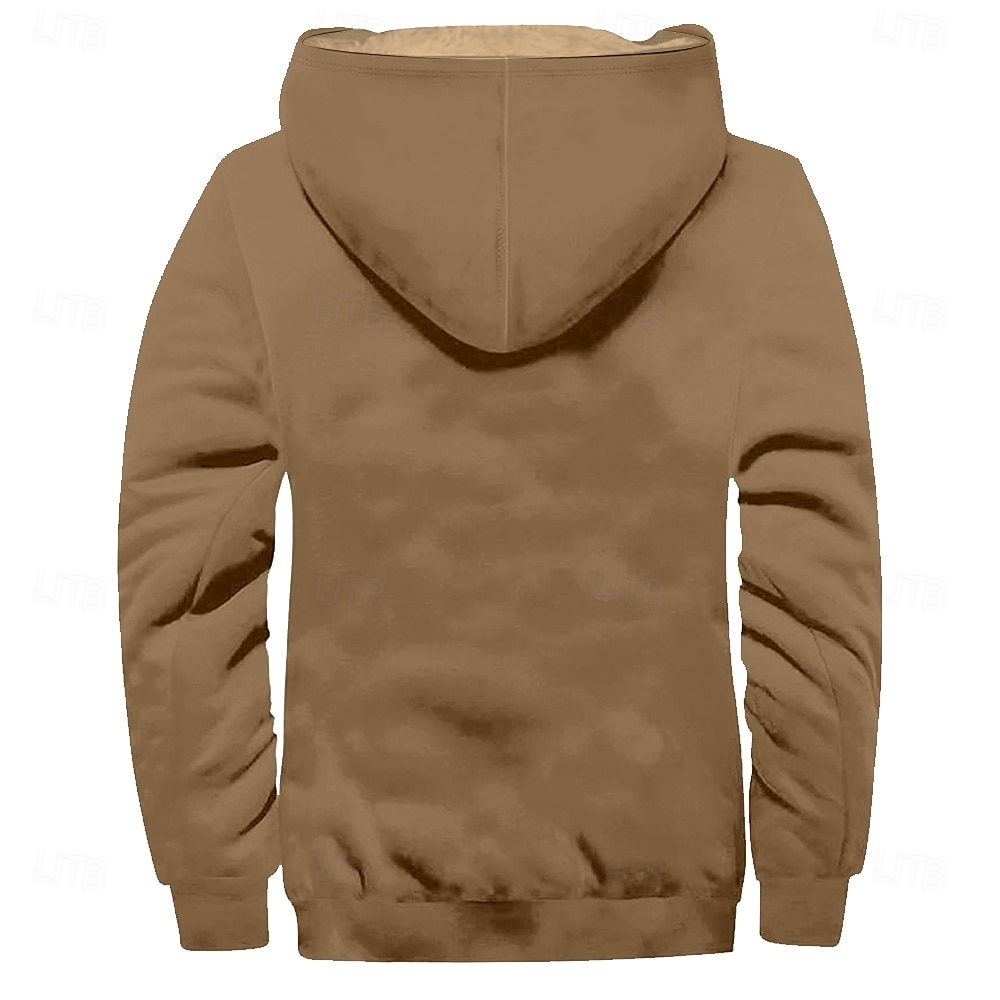 Men's Solid Color Cowboy Fleece Hoodies Hoodie Hooded Sweatshirt Hooded Fashion 3D Print Holiday Streetwear Brown Khaki Zipper Pocket Fall Winter Designer