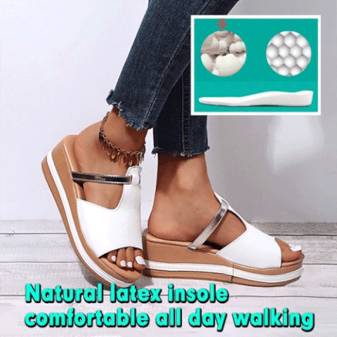 🔥Last Day Promotion 50% OFF - Women's Leather Platform Wedge Orthopedic Sandals