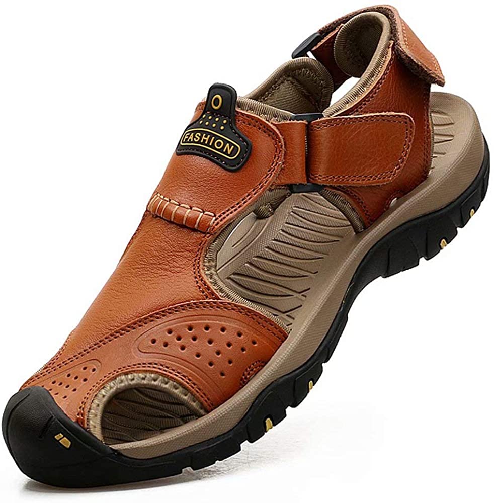 Men's Leather Sandals Outdoor Hiking Sandals Waterproof Athletic Sports Sandals Fisherman's Beach Shoes Closed Toe Water Sandals