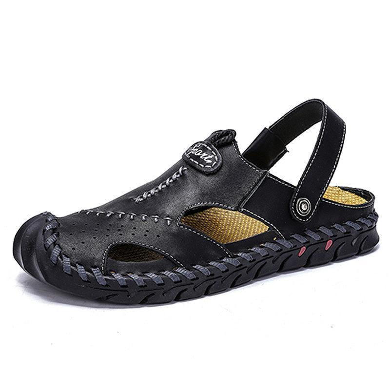 Kaegreel Men's Hand Stitching Leather Non Slip Outdoor Casual Beach Sandals