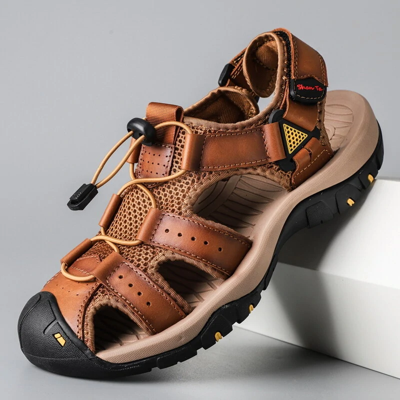 Men Cowhide Breathable Non-Slip Soft Bottom Comfortable Outdoor Casual Beach Sandals
