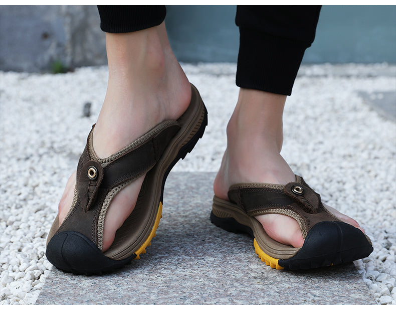 Leather Shoes Men's Sandals Men's Flip Flops Men's Casual Shoes Classic Massage Beach Slippers Anti-slip
