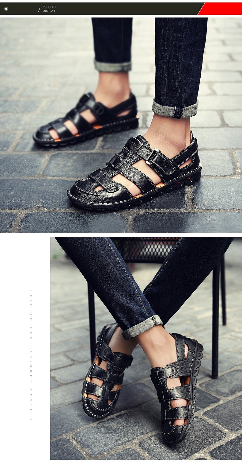 High quality cow leather sandals summer outdoor handmade men sandals fashion comfortable men beach leather shoes