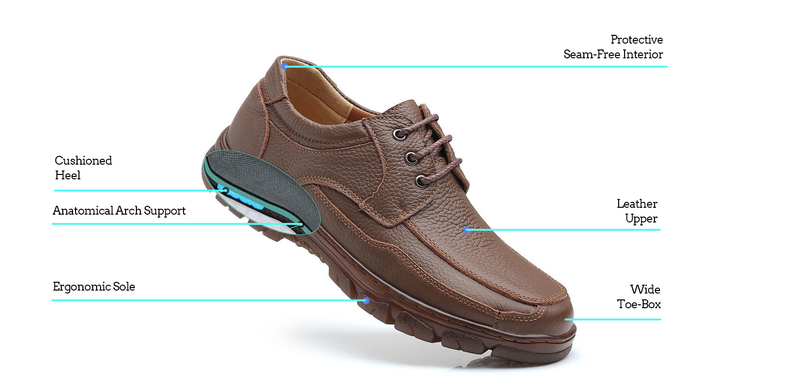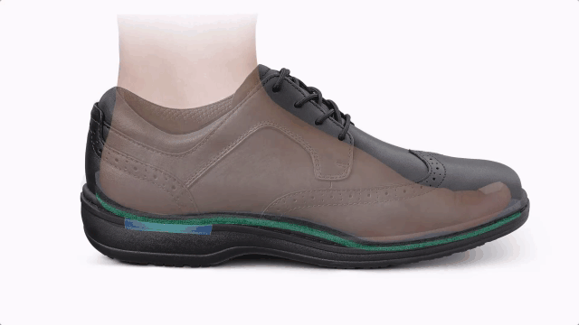 Innovative Ortho-Cushion™ System with premium orthotic insole and ergonomic cushioning sole soften impacts, improves the ease of walking and