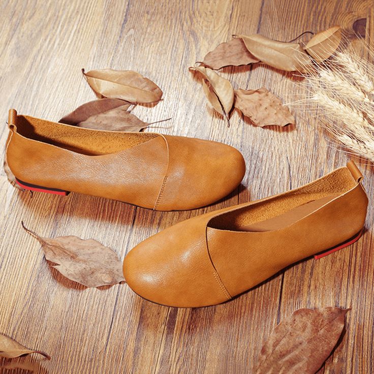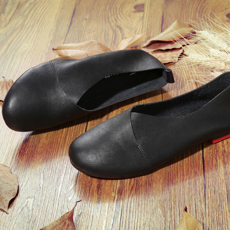 Women's Flat Round Head handmade leather Pumps