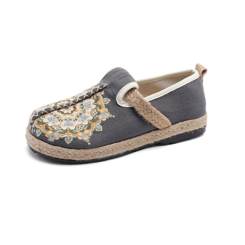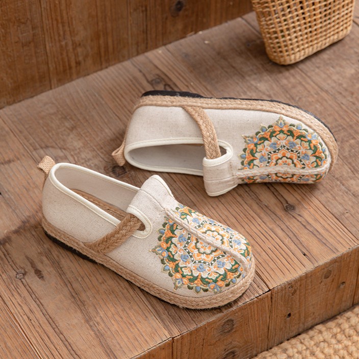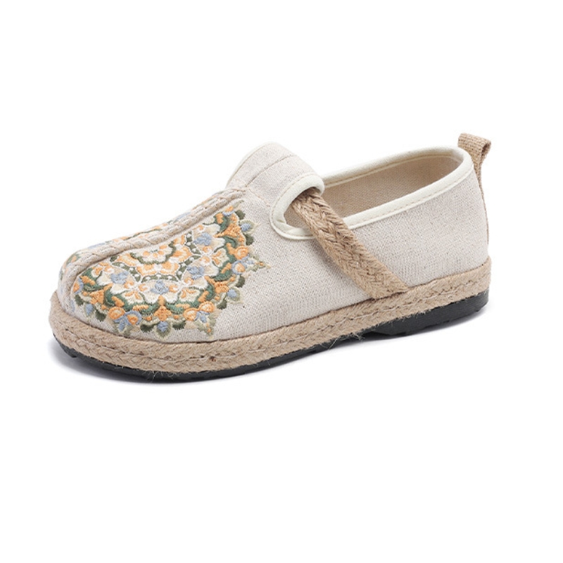 Women's Floral Embroidered Linen Comfort Flats-✈️Buy 2 Free Shipping✈️