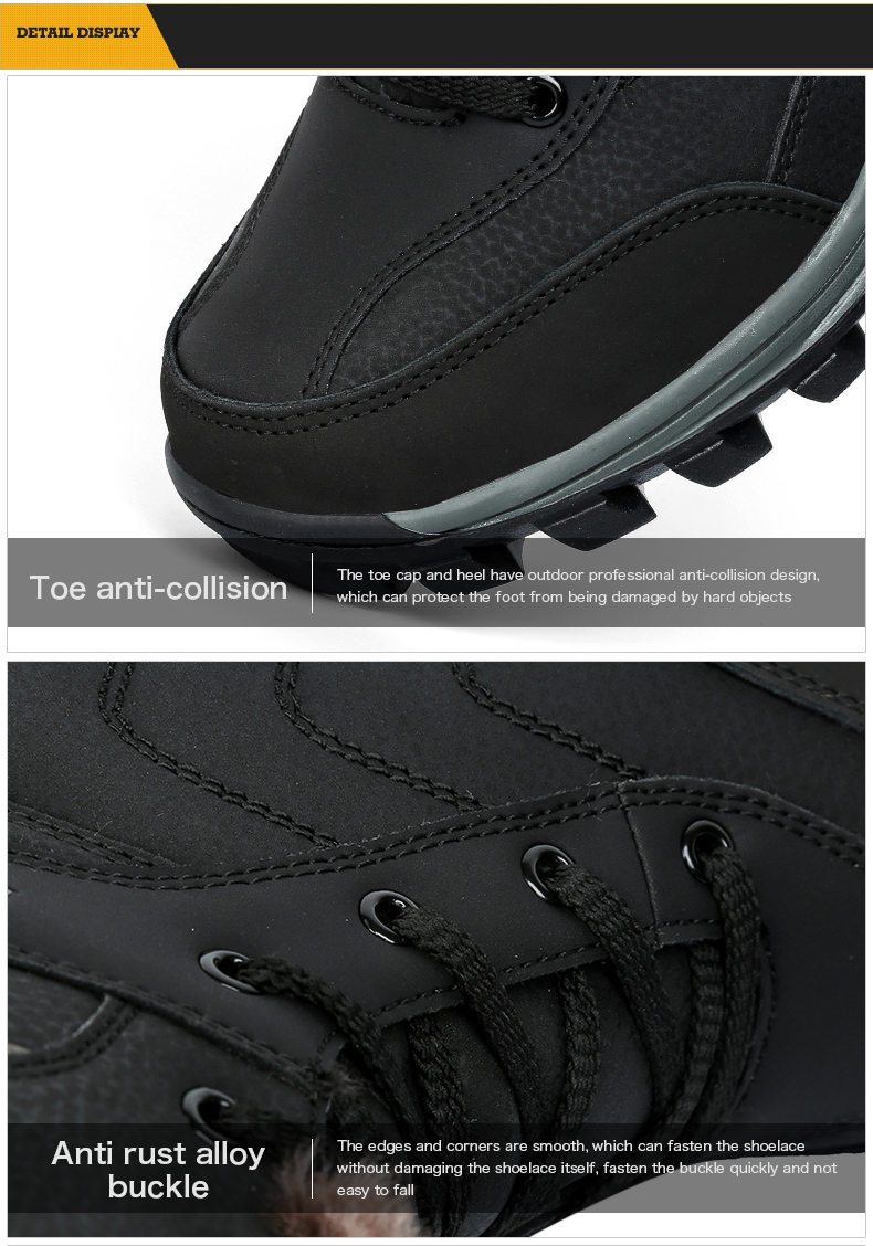 Featuring TPU reinforced safety toes, these winter warm boots protect your toes from rocks and other sharp objects, providing excellent protection during daily work or outdoor activities.