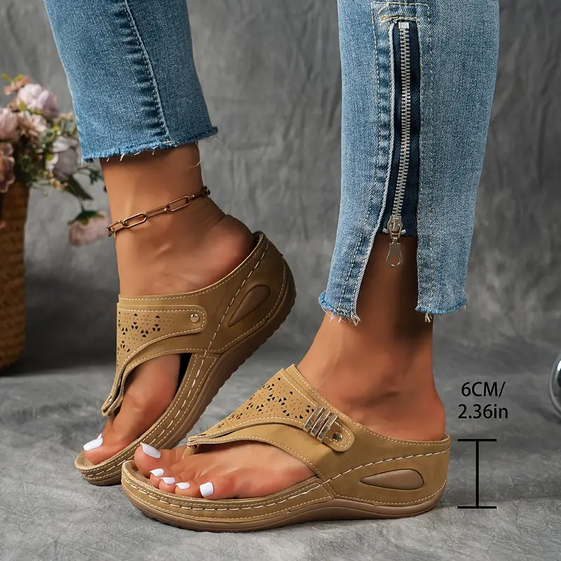 With these sandals, you won't need expensive doctor's visits or expensive insoles. Every step you take with the sandals is cushioned by the sturdy and soft sole. The thick sole absorbs shocks and supports the entire foot, not just the heel.