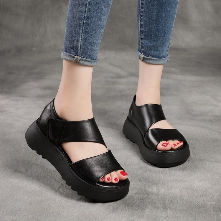 • Elegant Thickened Heels-These shock-resistant wedge heelsstretch the legs to the right height with a spongy cushion.