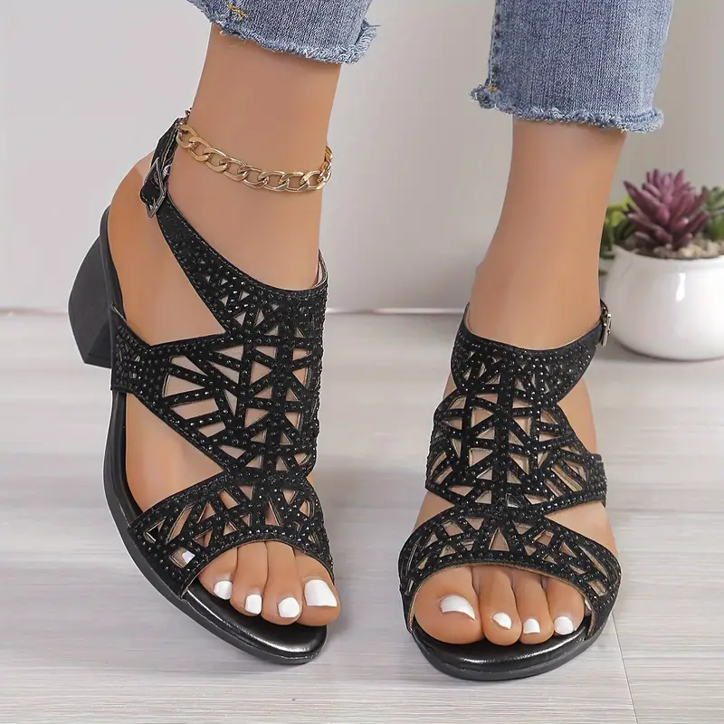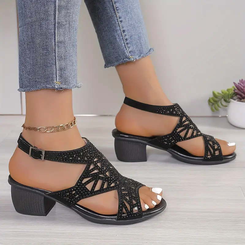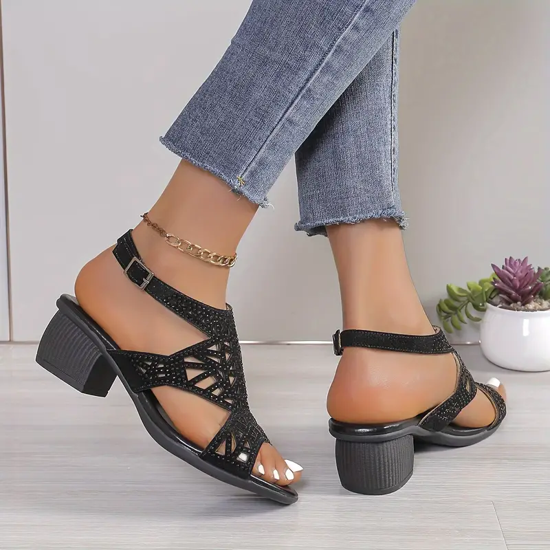 🔥Last Day Promotion 50% OFF - Women's Rhinestone Decor Chunky Heel Sandals