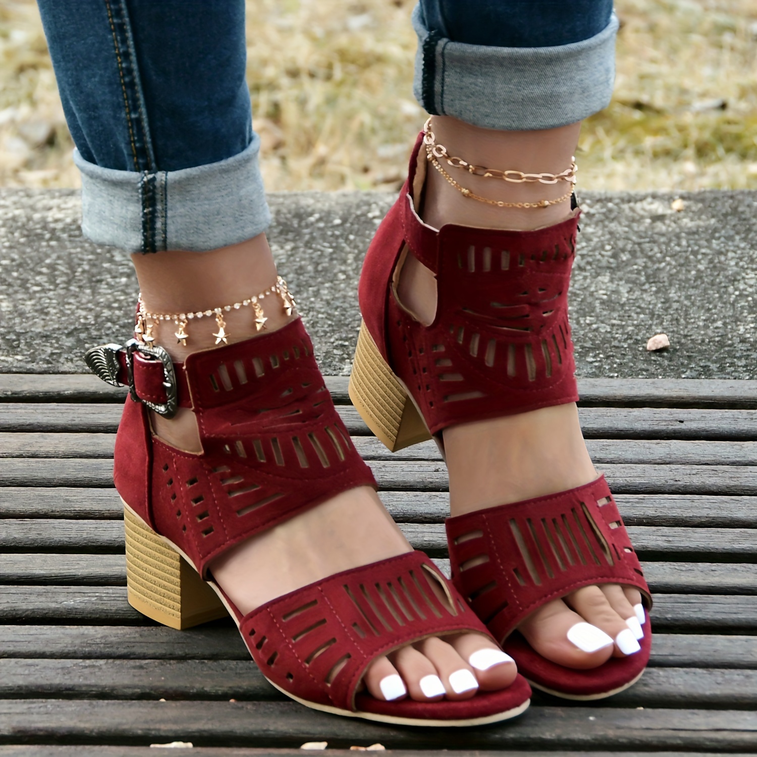 • Elegant Thickened Heels-These shock-resistant wedge heelsstretch the legs to the right height with a spongy cushion.