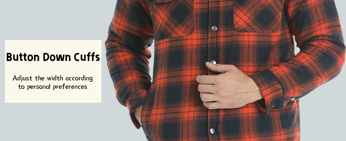 • KEEP WARM: This quilted lined flannel shirt built with button cuffs and quilted polyester padding for more durability and added warmth.